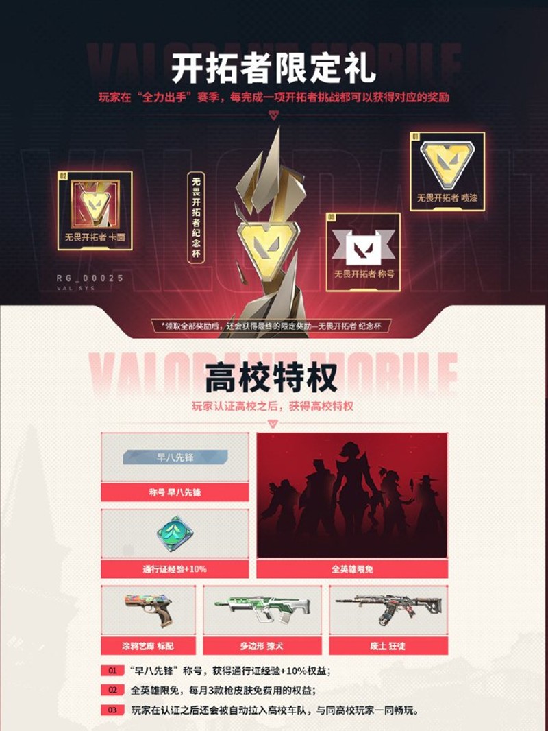 玩家认证高校之后,可以获得高校特权,包括“早八先锋”称号、全英雄限免、通行证经验+10%以及每月3款枪皮免费用的权益。