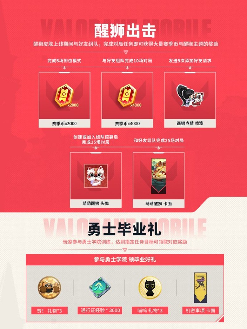 醒狮皮肤上线期间,玩家与好友组队完成对局任务,即可获得大量赛季币与醒狮主题的奖励,包括萌萌醒狮头像和萌萌醒狮卡面。