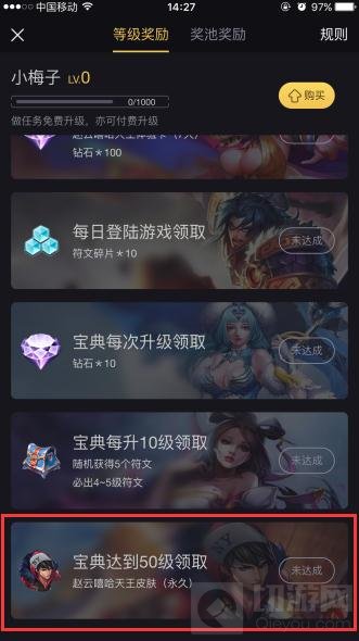 步骤四:当你完成自身的任务积攒经验达到一定等级的时候就可以领取赵云的嘻哈天王永久皮肤了。