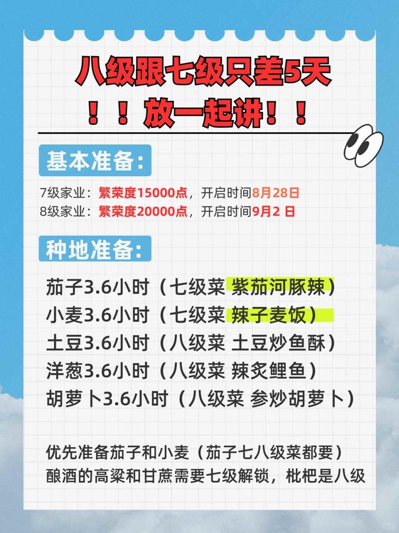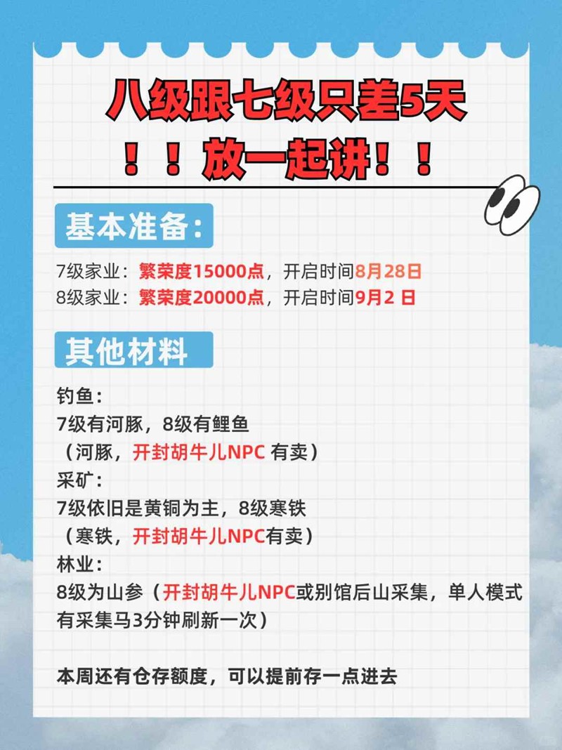 8级家业:繁荣度20000点,开启时间9月2 日(跟七级只差5天,放一起讲)