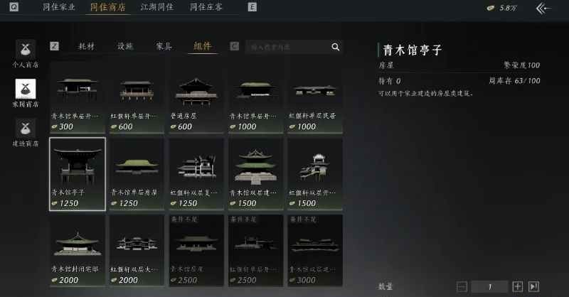 找到一个有墙的地方,打开建造模式,选择组件【青木馆亭子】放置,然后通过墙壁卡视角将第二个亭子卡到和第一个亭子相同的位置,这样就用一个亭子的空间进行无上限的繁荣度提升了!