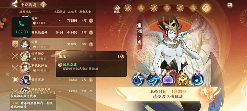 第二轮要观察第一轮其他人的伤害,两轮伤害要控制在略高于第一轮第2名的伤害,我一般还是用王阳明李秀宁来打,可以挂机到4个回合结束。