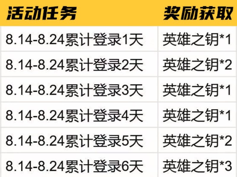 第一部分为【登录福利】,累计登录对应的天数可以直接领取英雄之钥;