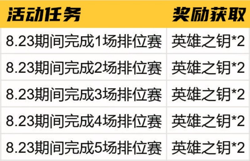 另一个部分为【8.23福利】,需要完成一定数量的排位赛对局才可以领取英雄之钥。
