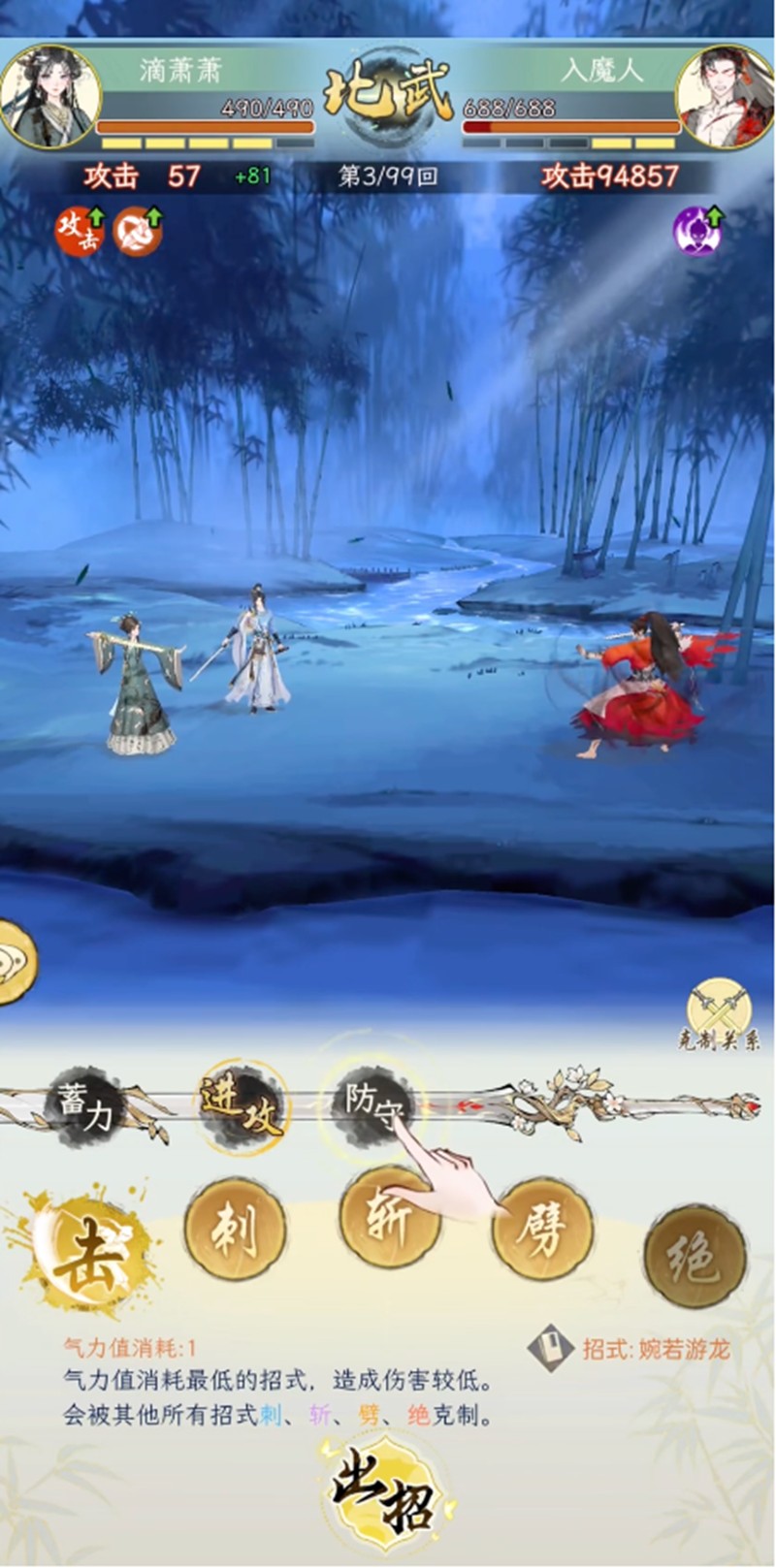 在每一场对局中,猜招环节都至关重要。玩家需要根据对手的出招习惯进行判断,例如对方连续使用强力攻击后,很可能因气力不足而转为普通攻击或防御。此时选择合适的反击招式,便能有效压制对手,掌握战斗主动权。猜对招式不仅能打断对方攻势,还能触发反击效果,造成可观伤害。但要注意的是,每一次动作都会消耗气力,因此必须谨慎使用,避免陷入被动。