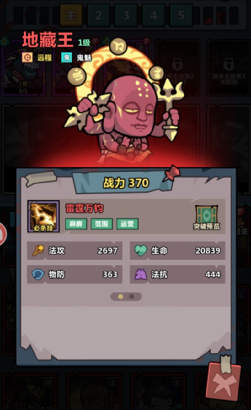 输出角色方面,地藏王是一个非常强力的选择,他不仅具备法术输出能力,还能附加麻痹效果,并且可以与正义属性的角色搭配使用,灵活性很高。阎罗王则能为队伍提供爆发伤害,增强整体输出能力。三足金乌作为远程群体攻击角色,获取方式简单,完成主线任务即可获得,后期还能提升aoe伤害,是不错的输出补充。