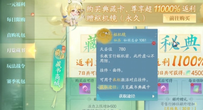 在诛仙2的商城中,月卡分为两种类型,分别是7天体验月卡和30天豪华月卡。7天月卡的价格为12元,虽然时间较短,但适合初次尝试氪金的玩家。购买之后,7天之内每天都可以领取返利奖励,同时还能提升角色的活力上限,并增加塔罗解字的使用次数。此外,玩家每天还能获得经验丹和银币,这些资源可以用于角色成长和道具购买,整体来看,这个月卡适合想要小幅度提升的玩家。