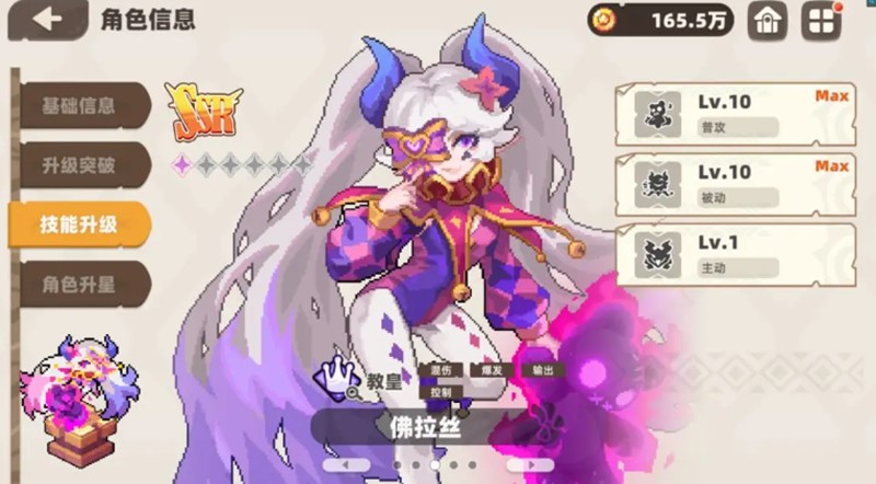 小熊公主佛拉丝是一名独特的辅助型角色,她的普攻可以为怪物附加“恐惧”状态,使其朝反方向移动。虽然控制效果具有一定的随机性,但在特定关卡中是必不可少的战术选择。她的普通攻击和被动技能都需要点满,以提升控制频率和辅助能力。