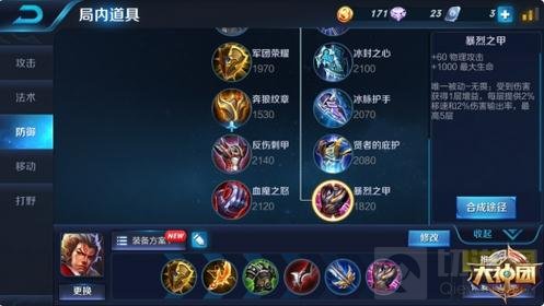 出装上,可选择军团荣耀、振兴之铠、暴烈之甲这三件装备来提升张飞的防御和生命值。闪电匕首、泣血之刃和破军这三件装备可强化张飞的技能伤害。