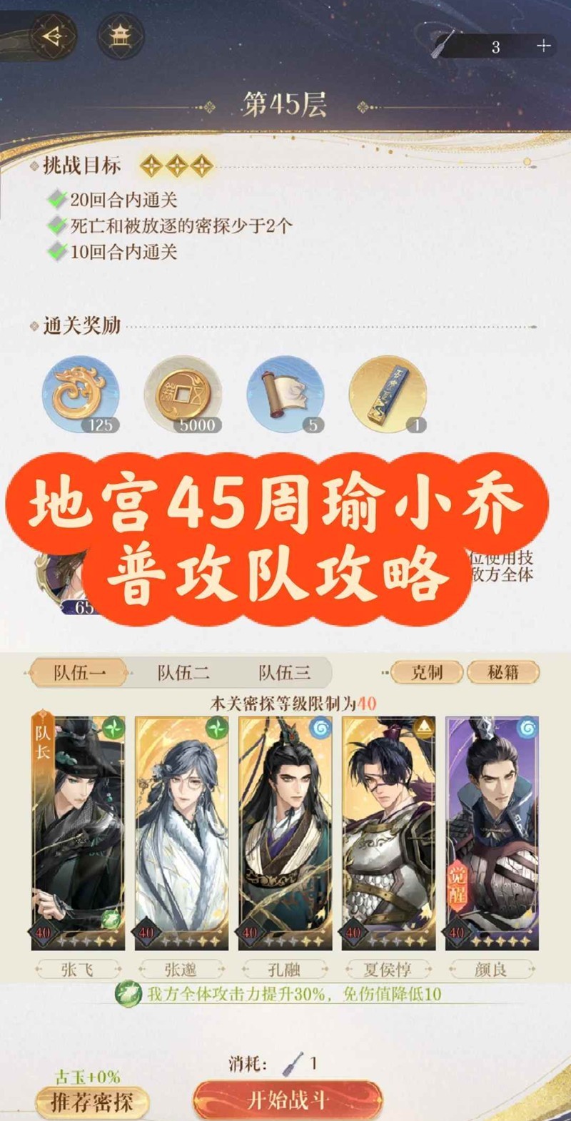 以上就是如鸢地宫45满星怎么打,周瑜小乔普攻队攻略的全部内容了,更多游戏资讯,攻略内容敬请关注切游网,您的支持是我们努力的动力!