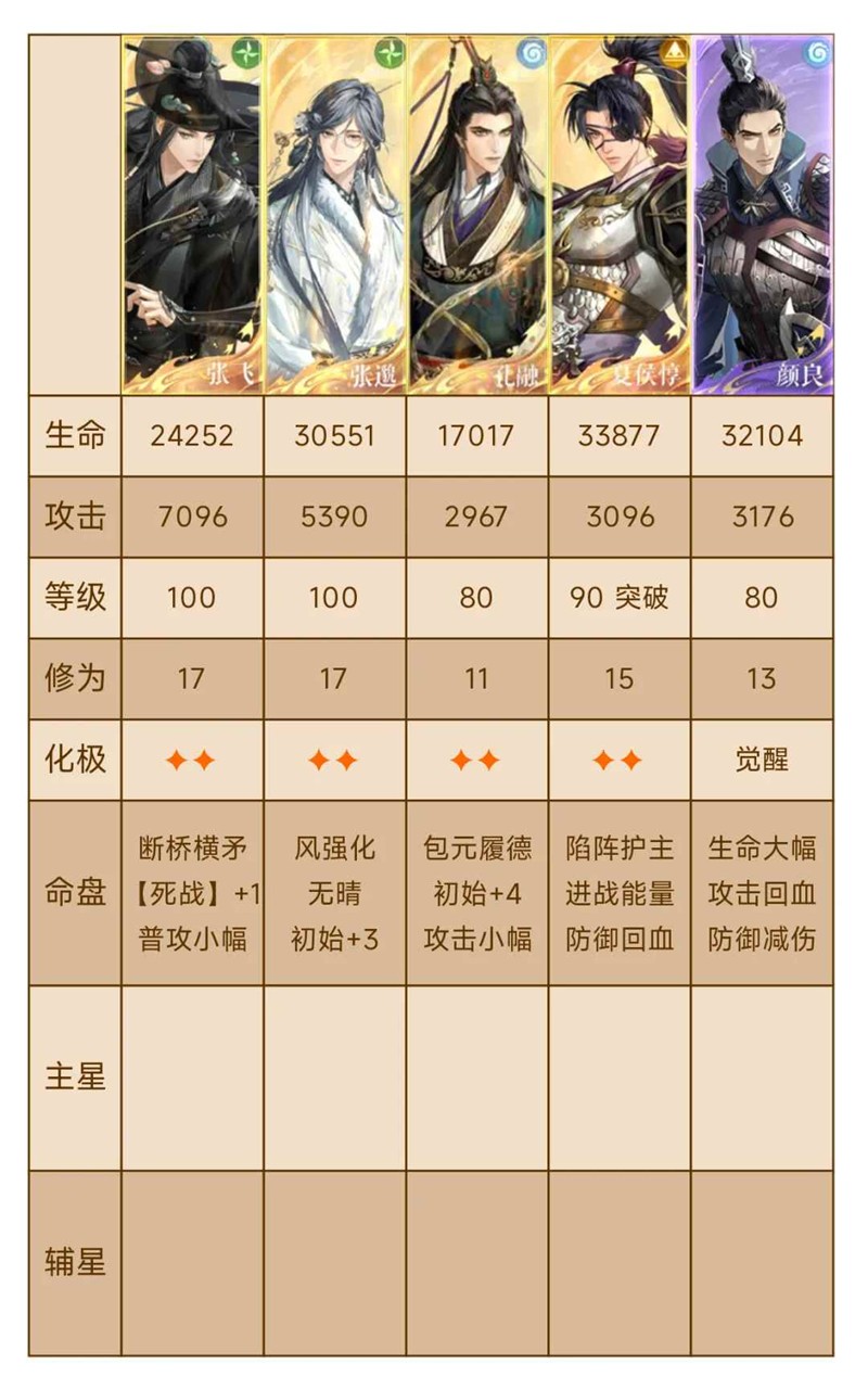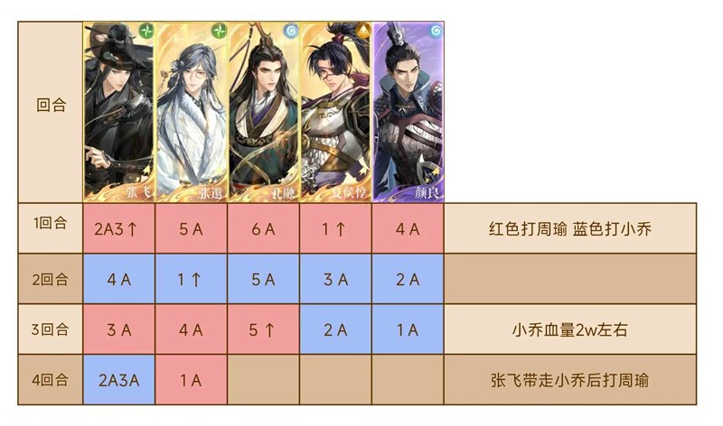 依旧是无星石普攻队,配队图2,跟打图3,这个四回合打法是无视机制打法,没有夏侯惇的话可以上个史子眇,走长线打法,二回合张飞放大,三回合张邈放大,四回合史子眇防御/放大,八回合之内打完。