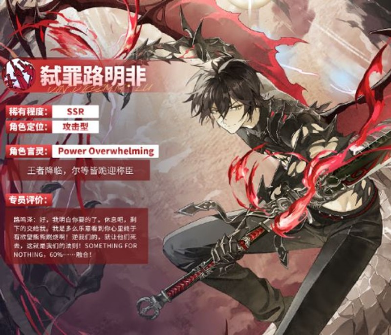 角色评价:弑罪路明非以其强大的攻击力和独特的技能组合,成为游戏中的顶级角色之一。他的技能不仅能够对敌人造成大量伤害,还能在战斗中提供额外的增益效果。