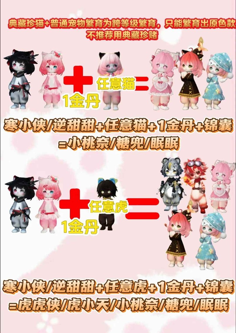 想提前赌一把的宝子们可以在更新前一天试试这个公式如图p2(但是典藏珍猫+普通宠物繁育为跨等级繁育,只能繁育出原色款)