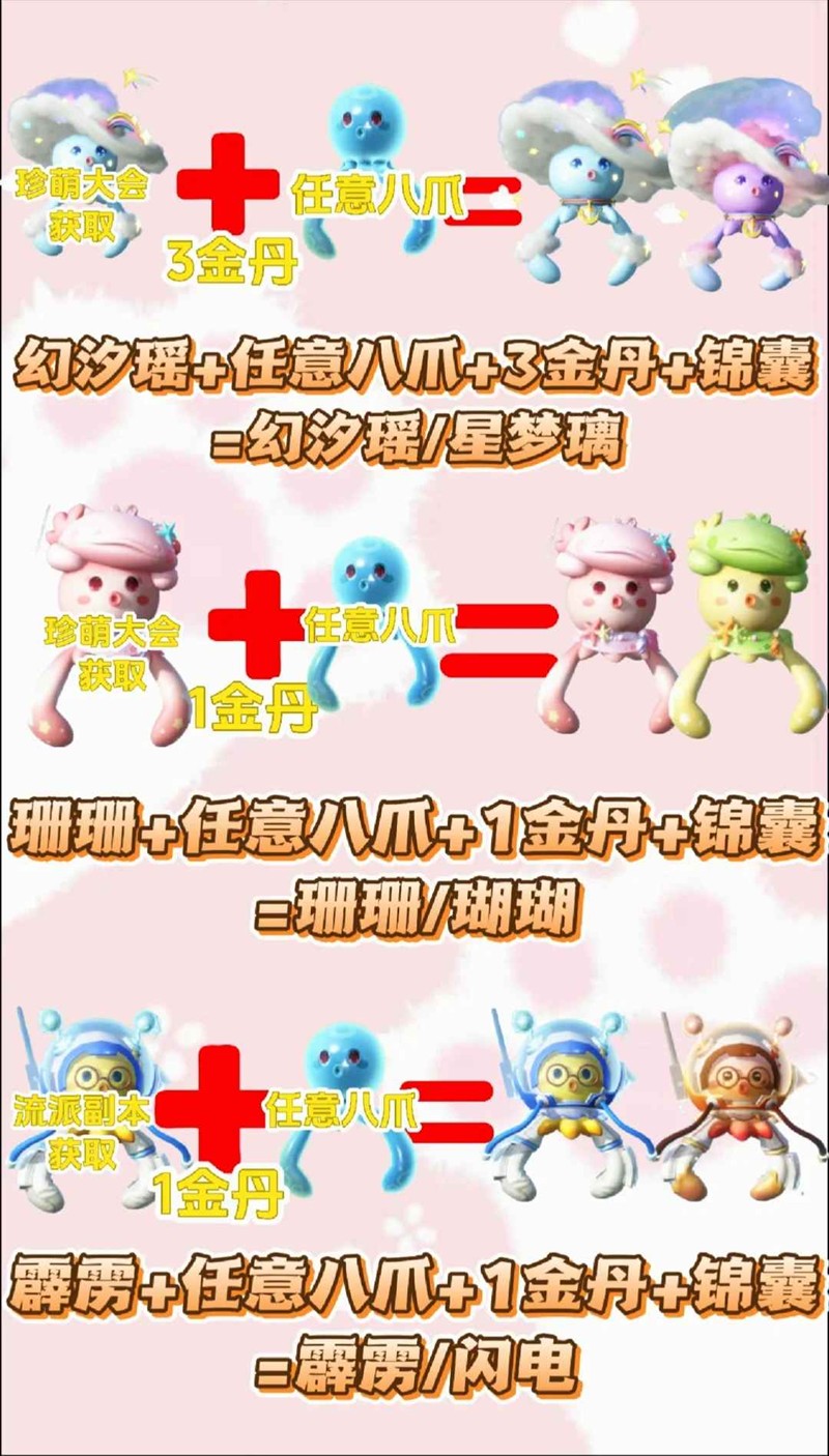 珍萌大会获取的珊珊+任意八爪+1金丹+锦囊=珊珊/瑚瑚