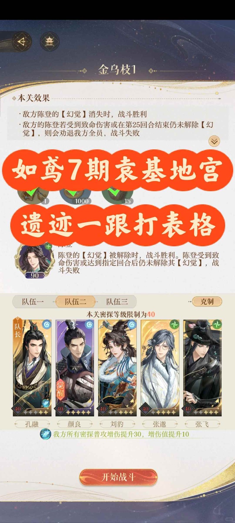要点1:陈登开大回合,必须要让【丙】死掉,这回合【丙】会有触发伤害,打人很痛。