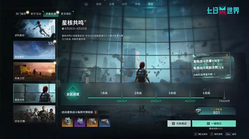 点击活动界面-异象轮盘-星核共鸣页即可参与。
