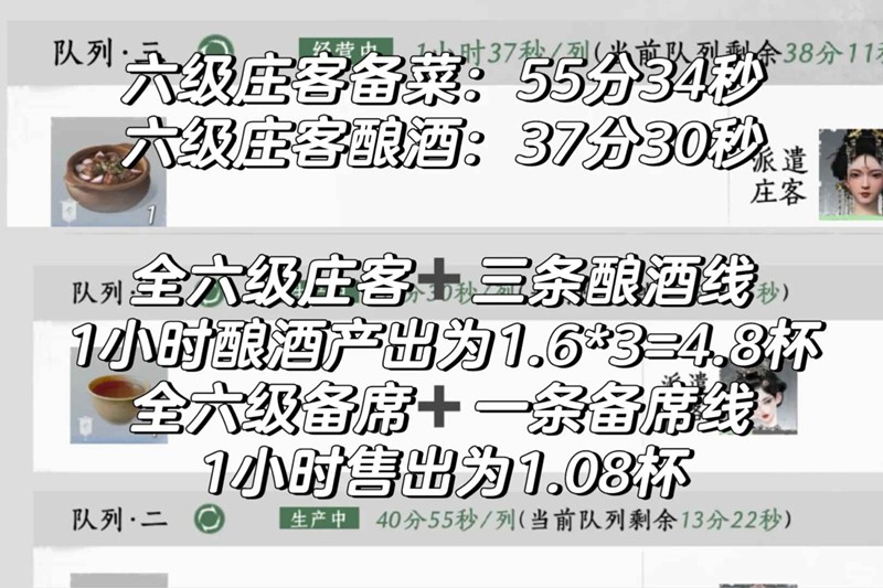 此方法庄客全满级后每天会有1.5杯的亏空,如果想全自动可以