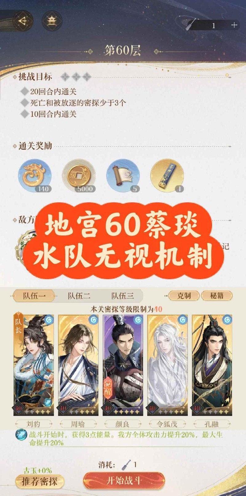 以上就是如鸢却扇歌地宫60蔡琰攻略,水队无视机制打法的全部内容了,更多游戏资讯,攻略内容敬请关注切游网,您的支持是我们努力的动力!
