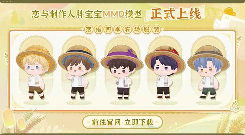 恋与制作人胖宝宝MMD模型上线,恋语四季农场开放下载~8月23日起,点击【MMD模型下载】,选择相应MMD模型,即可点击下载。MMD版权归属叠纸所有,使用时请遵守模型文件中所述的注意事项。一起来和小编看看吧~