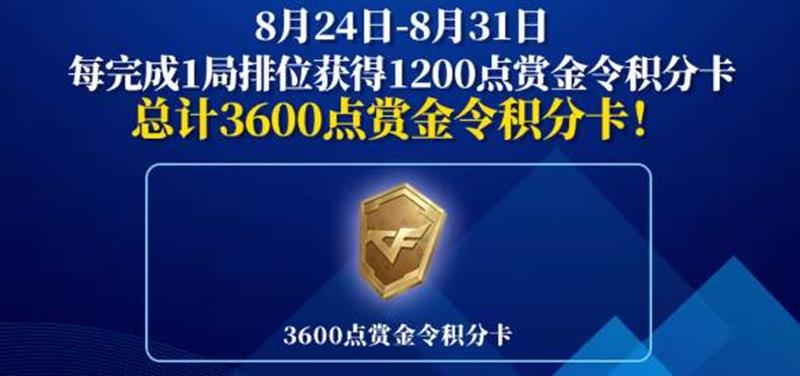 活动内容:每完成1局排位获得1200点赏金令积分卡总计可领取3600点赏金令积分卡!