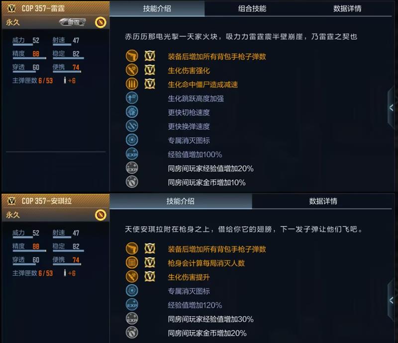 另外还有两款在生化模式中有特殊技能加持,分别是COP 357-雷霆和COP 357-安琪拉。