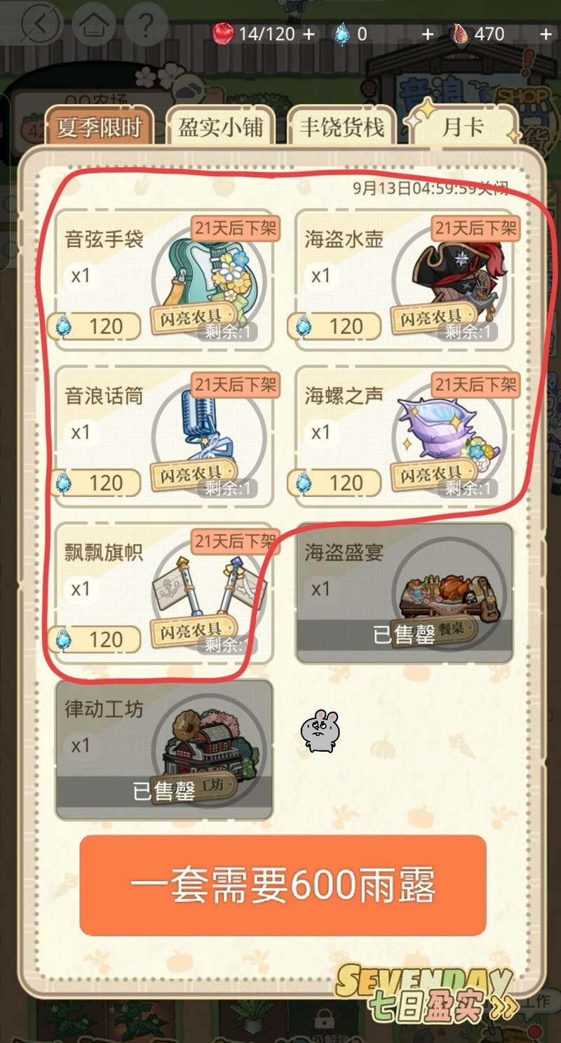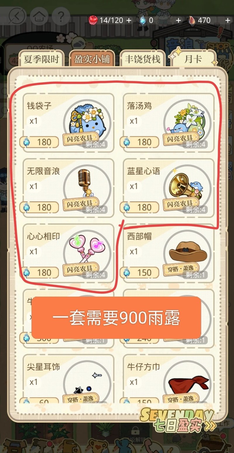 →p3一套农具需要600雨露,即需要氪3次6r