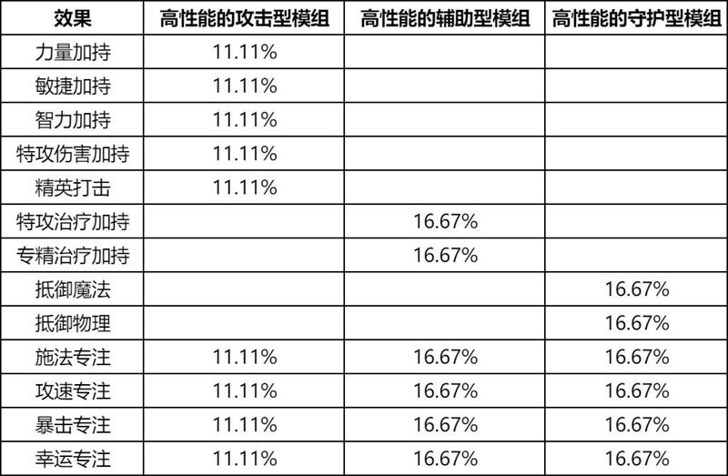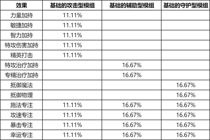 备注:词条效果从其所属列表中等概率随机获取(精确至小数点后两位)。