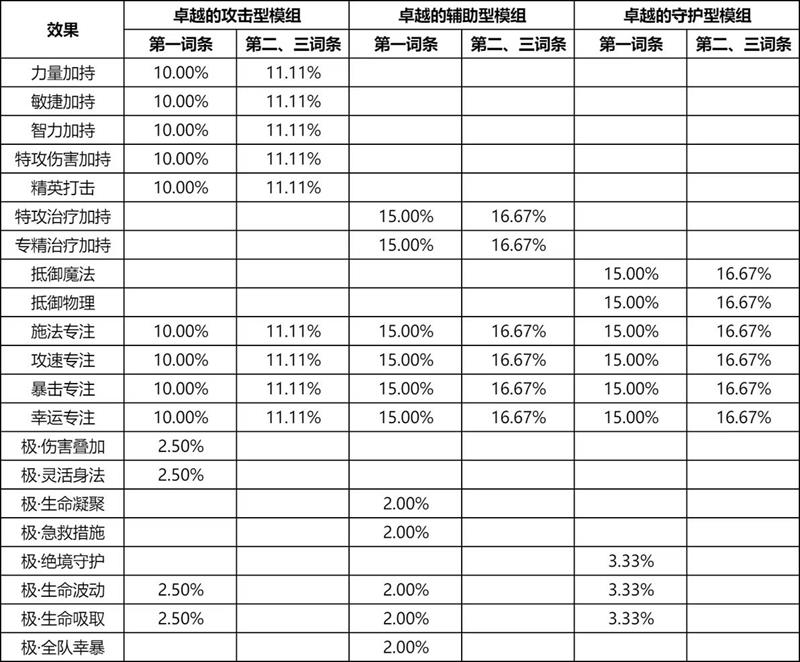 备注:第二、三词条效果从其所属列表中等概率随机获取(精确至小数点后两位)。
