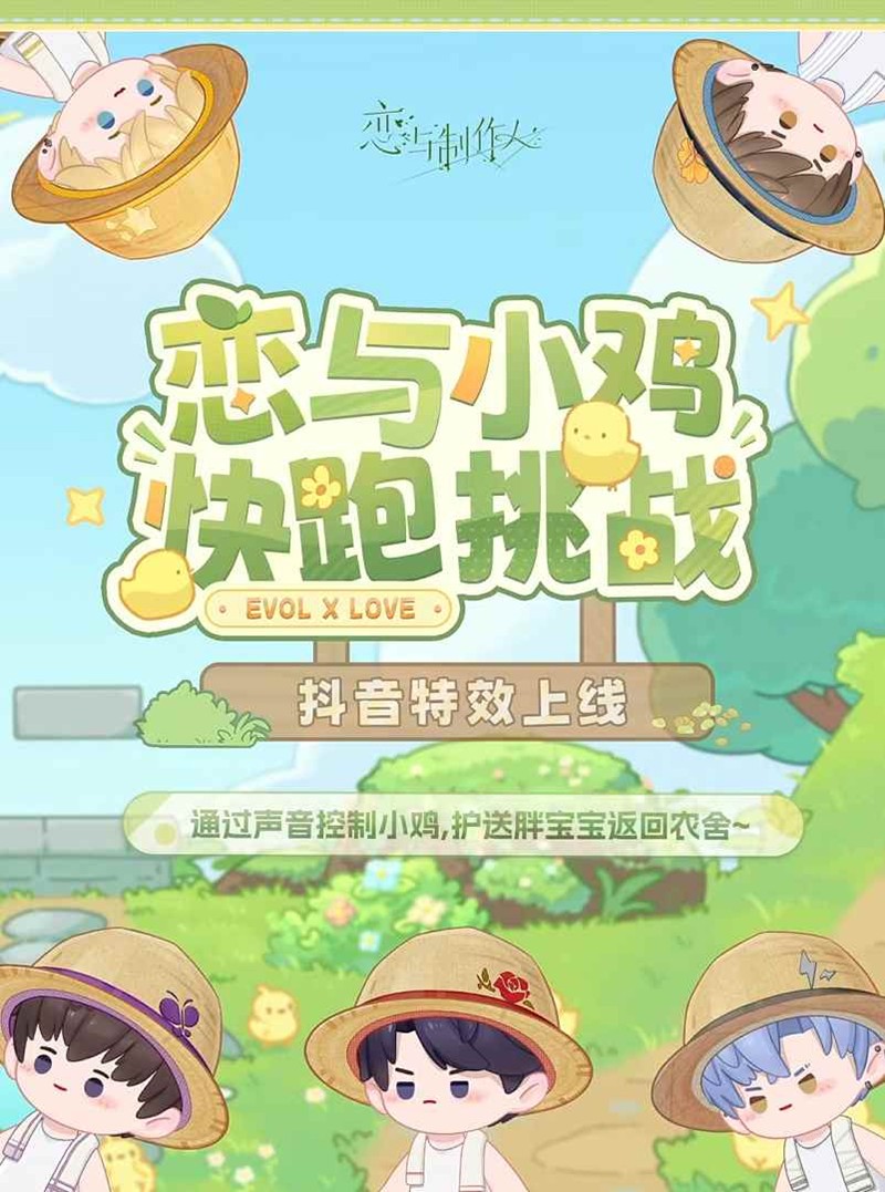 恋与制作人抖音特效【恋与小鸡快跑挑战】永久上线~发出声音控制小鸡,护送胖宝宝返回农舍!在抖音APP搜索账号【恋与特效小助手】,前往主页点击【特效】栏,找到相应特效即可开启挑战!一起来和小编看看吧~