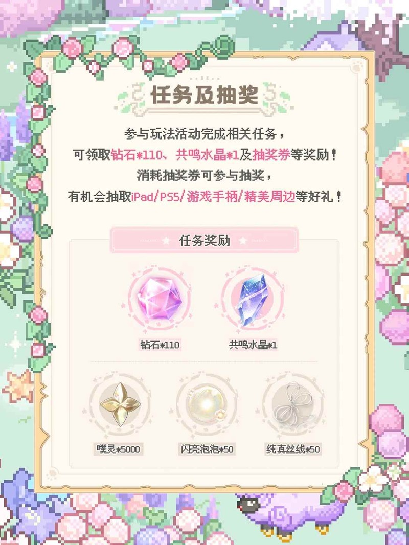 参与网页活动活动赢取钻石、活动专属名片背景、启示水晶等多重游戏道具!还有机会赢iPad/PS5/游戏手柄/精美周边等好礼!