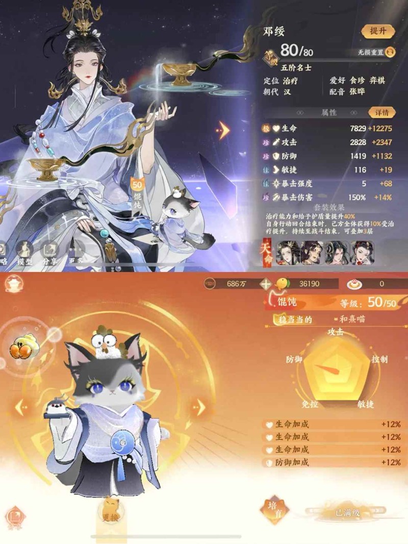 3)名士猫洗生命加成,九世灵带60级以上的极品九世灵即可。