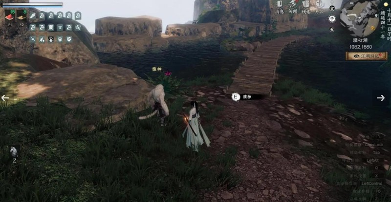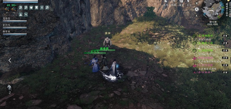 猿神位于云鹤村后山区域,玩家可以打开大地图输入云鹤村进行传送。到达村子后往后方行走,沿着山路向上大约200米就能在山腰平地处找到这个棕毛猿猴人形NPC。任务触发点的具体坐标是澄心湖1082,1660,在地图左上角输入坐标即可定位。