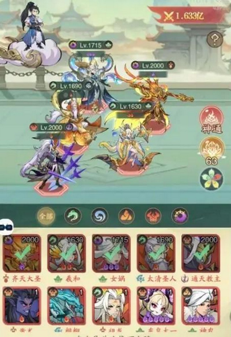 在阵容搭配方面,齐天大圣作为核心输出角色,经常与通天教主、女娲、羲和、太清圣人等异兽组成强力阵容。这个阵容在副本中的表现相当出色,能够快速清空敌方单位。若追求高爆发输出,可以选择齐天大圣搭配蚩尤、太清圣人、女娲和羲和的阵容,这个组合在控制辅助方面表现优异,无论是推图还是爬塔都能应对自如。