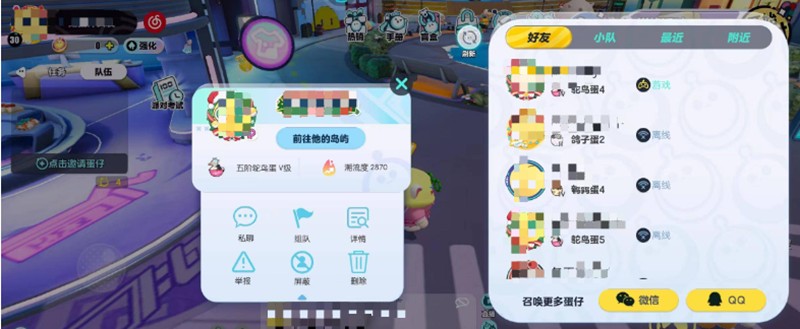 在蛋仔派对游戏中,每个玩家进入时都会被随机分配到一个岛屿中。如果和好友不在同一个岛屿,可以通过好友界面点击对方头像选择"前往对方岛屿"的功能。但有时候这个功能会无法正常使用,显示对方的岛屿被摧毁或其他错误提示。