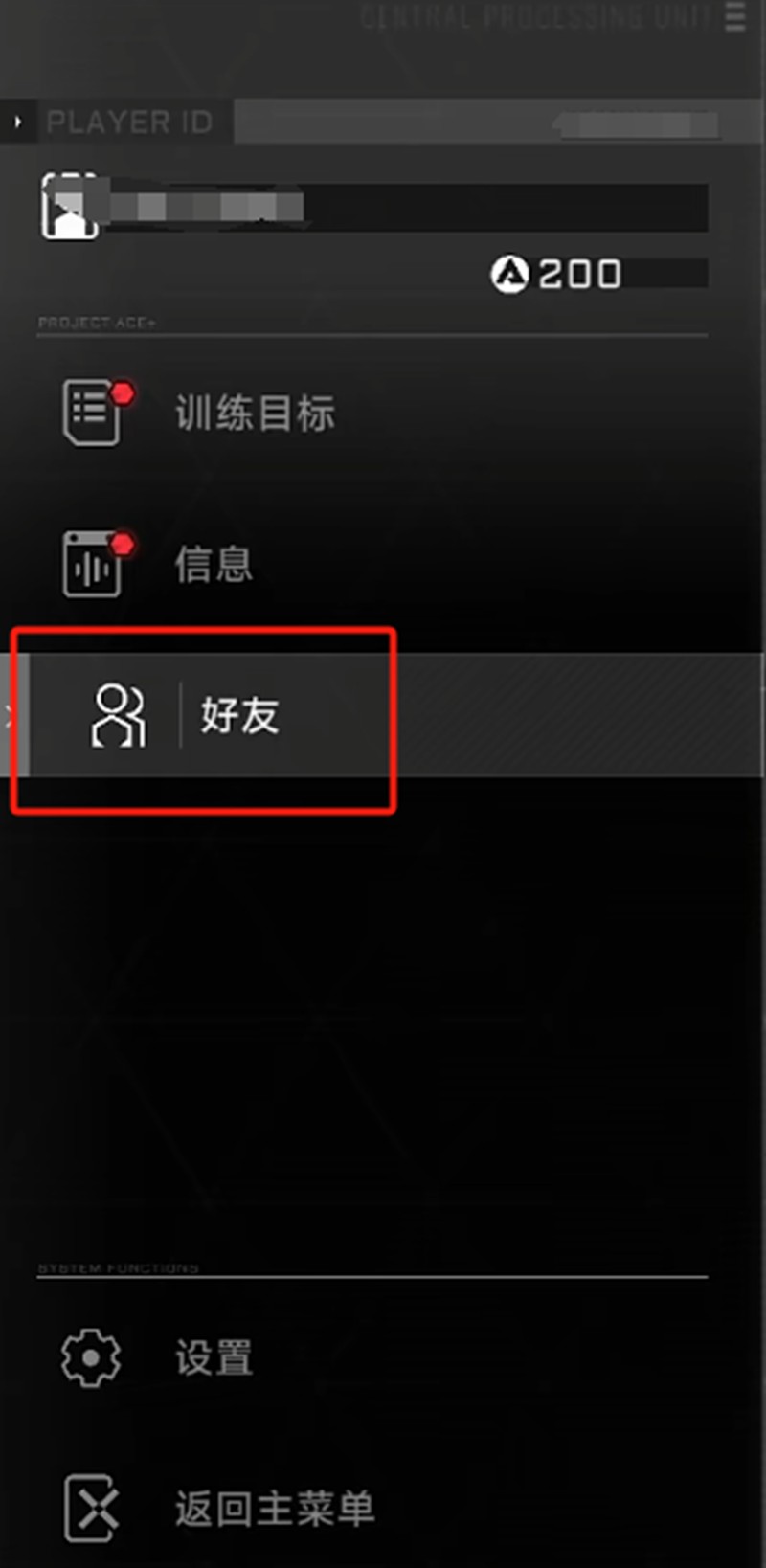在主菜单的设置页面中,玩家可以看到自己的ID和名称,这个页面同时也是好友系统的入口。在这里除了查看个人信息外,还能了解到后期的训练目标和游戏相关资讯,非常实用。