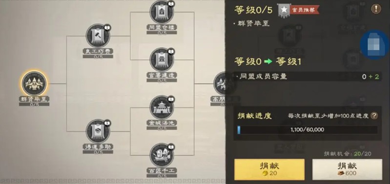 科技树的选择直接关系到联盟的发展方向。前期应该优先发展类科技,提升人口容量、降低消耗、加快建筑速度。待基础稳固后,再转向战争科技以获取属性加成。官员推荐的标记功能可以引导成员的捐献方向,金币与资源的合理配比也需要特别注意。