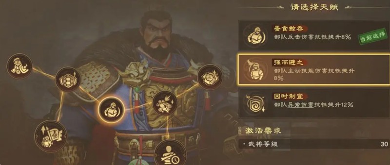 天赋树的选择需要兼顾控制强度和生存能力。定韬兵略提供的抗震率加成确保曹操在敌方控制下仍能发挥作用。掌控之阵激活后,带有控制阵法的士兵将获得输出提升,这与曹操的控制定位完美契合。
