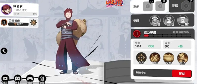 我爱罗在漫画群星大集结中是一名优秀的控场角色。他的被动技能可以通过攻击积累束缚值,满值后可以禁锢敌人。普攻会在地面留下减速区域,控沙技能可以扩大普攻范围并制造屏障,大招则能对大范围区域造成持续伤害。