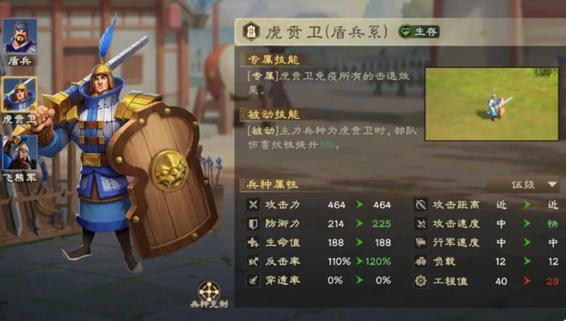 华佗与许褚组成的生存阵容堪称经典搭配,虎贲卫兵种免疫击退的特性配合许褚的普攻减伤效果相当不错。这对组合不仅能承担伤害,还能解放主力输出队伍,在中后期如果有夏侯惇、刘备等橙色武将加入,可以逐步替换华佗来提升队伍上限。