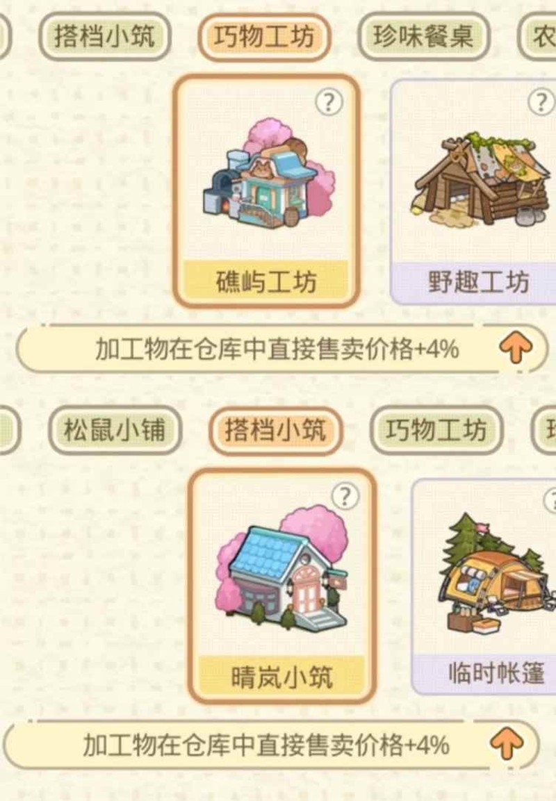 1. 金色搭档小筑、巧物工坊售卖加成4%(免费兑换2个)【加成8%】