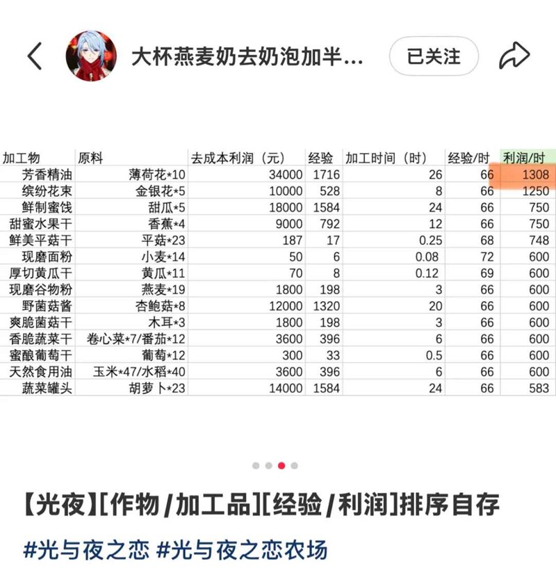 众所周知丰收相当于白捡的,于是我们每天做9瓶又白捡9瓶、一周白捡63瓶,理想情况下松鼠小铺全部刷到精油了那就是纯白捡200w+……