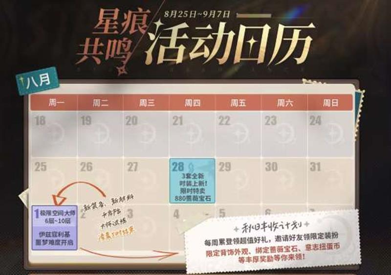 星痕共鸣将为你带来一个充满挑战和奖励的九月,更多福利活动内容,切游网会密切关注,为您带来最新内容。敬请期待。