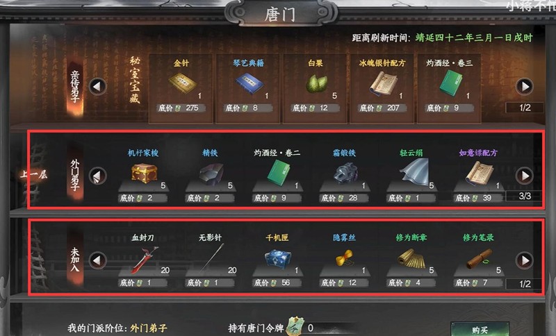 暗器材料一方面主要通过采集和怪物掉落获取,另一方面就是直接门派商店买。机关零件需要击杀唐门地牢的机关蝙蝠,每只蝙蝠掉落1-2个零件,用于制作高级暗器。商店购买方面,成都杂货铺出售基础材料,毒刺5铜钱一根,铁锭10铜钱一个,适合应急补充。