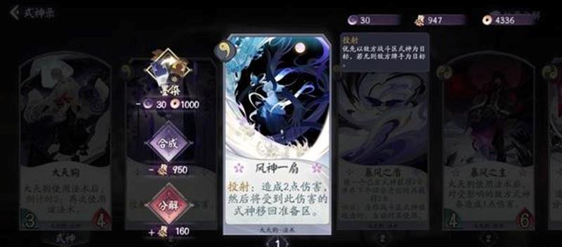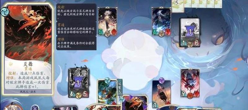 凤凰火觉醒后能够提升攻击牌手的频率,当我方式神使用法术牌时,投射效果会造成1点伤害。觉醒是二勾玉牌,叠到三勾玉阶段伤害次数会变得更多。大天狗和凤凰火的搭配非常实用,大天狗可以保留一勾玉牌,起手先用风神一扇开启倒计时。快攻阵容中的大天狗即使先手也要使用风神一扇,虽然这张牌没有直接伤害,但目的是通过倒计时2触发被动效果,击败战斗区的式神让我方式神直接攻击牌手。