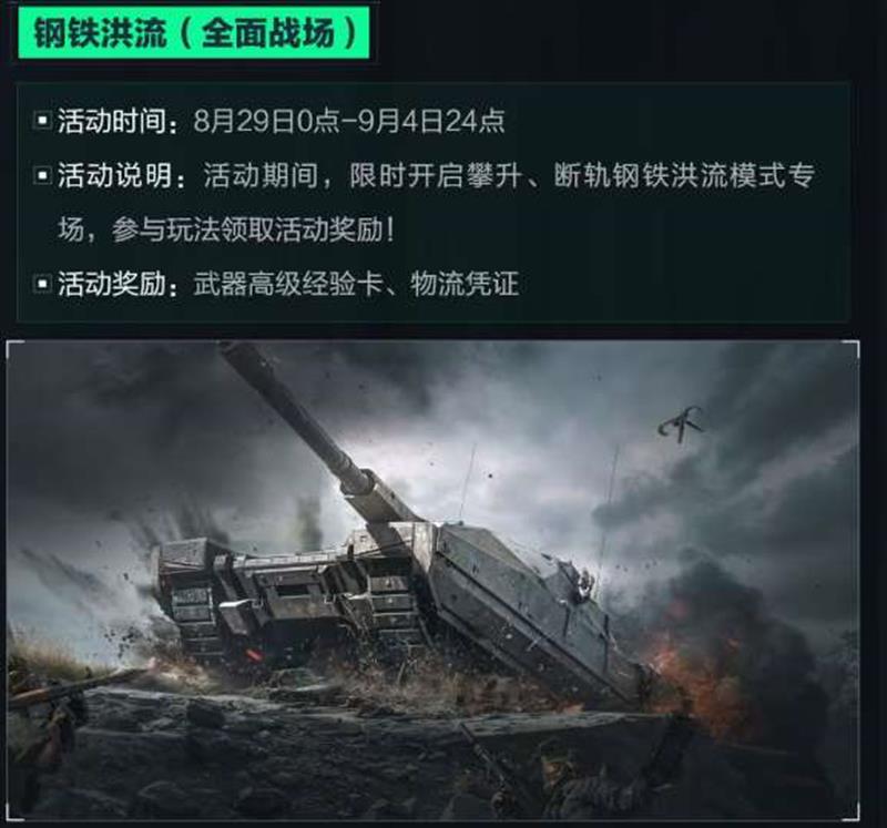 活动说明:活动期间,限时开启攀升、断轨钢铁洪流模式专场,参与玩法领取活动奖励!