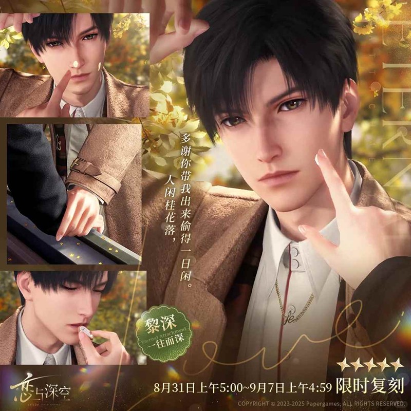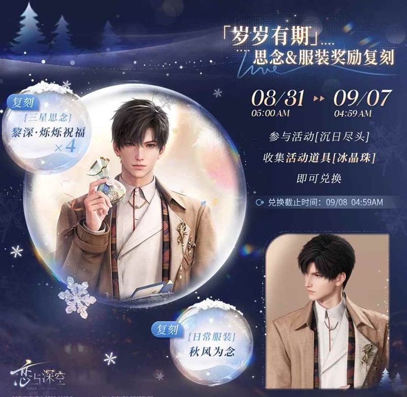 恋与深空黎深生日主题活动「一往而深」思念&服装复刻即将开启~活动期间,使用「深空许愿券」或「时光许愿券·限时」参与复刻许愿,限定五星思念「黎深·一往而深」许愿概率限时大幅度提升。一起来和小编看看吧~