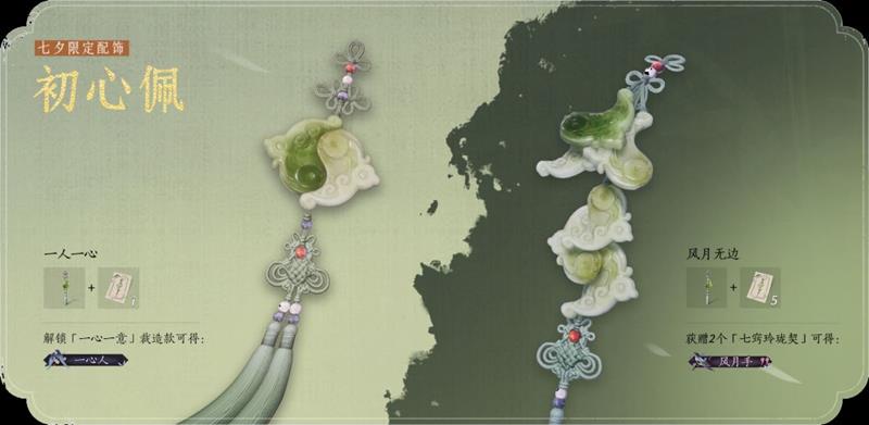 同时,8月29日至9月15日期间,商店中还将限时上架全新配饰【初心佩】,可通过他人赠送的【七窍玲珑契】,裁造升级为一人一心系列或是风月无边系列。