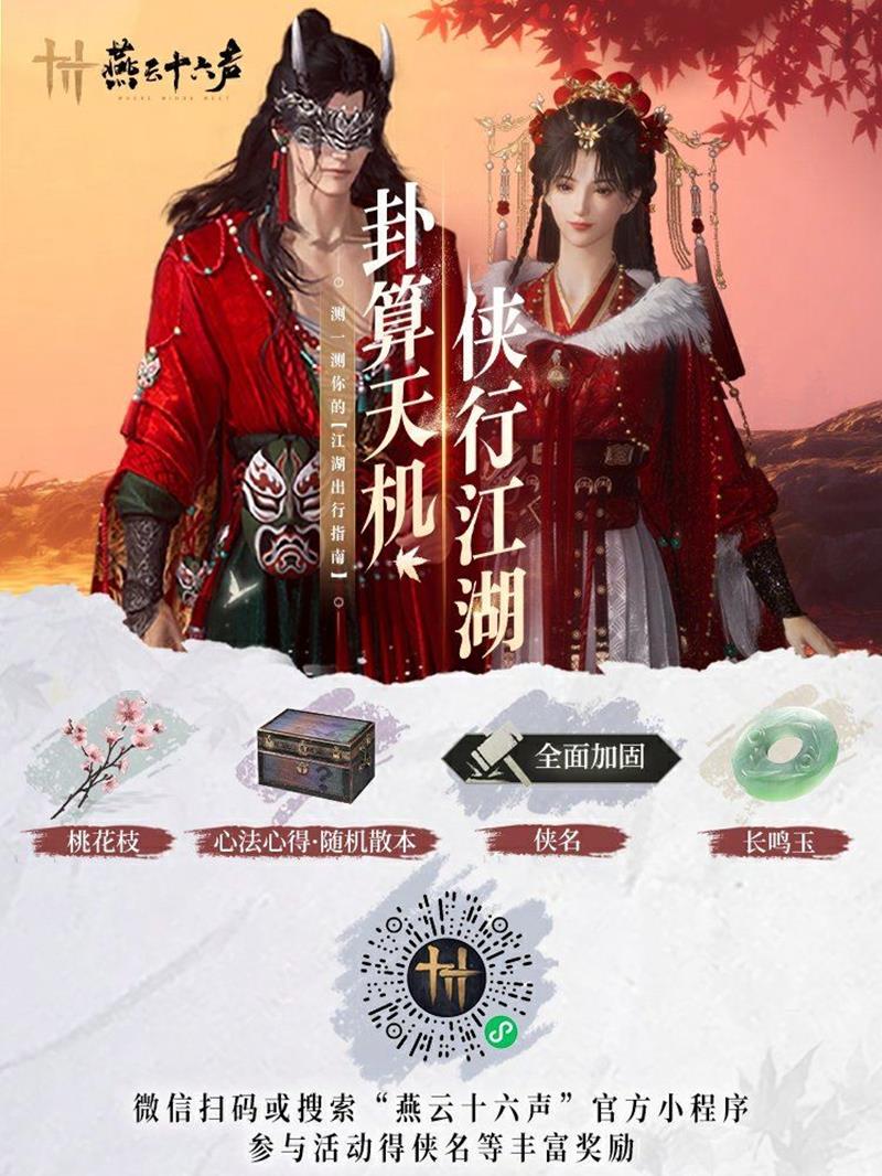 今日更新后,全新限时活动「鹊衔佳期」将正式开启。游侠可携挚友参与「云蔚绘影」,以星河为幕,鹊桥作景,定格专属留影;或体验新奇术「两心同」,考验彼此是否心有灵犀;还有新玩法「步步生花」,将繁花铺遍全场,赢得胜利;与此同时,江湖中有人心绪难言,欲邀你相会……