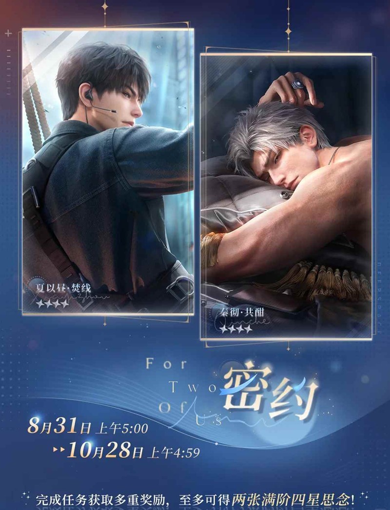 解锁特别密约后,除日常密约奖励外,还可自选领取限定四星思念「夏以昼·焚线」或「秦彻·共酣」;