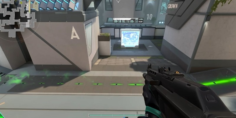 蛇吻是 viper 的标志性技能,当她向目标区域投掷化学容器后,落地形成的绿色溶液区域会持续对踏入的敌人造成生命值损耗,并附加易伤效果,这一双重惩罚机制大幅降低了敌人的防御能力,在防守方看来,这种持续伤害尤其适合部署在狭窄通道或必经之路,迫使敌人不得不暴露在己方火力网下,例如在守包点时,可将蛇吻铺设在入口两侧,形成夹击之势,而在进攻端,则可将其作为探路工具,通过观察溶液区域的动静判断敌方动向。